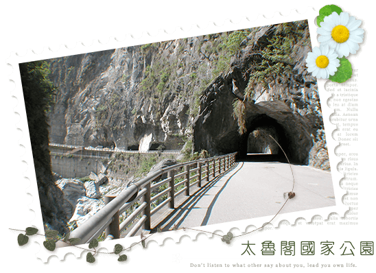 位於臺灣東部花蓮縣的太魯閣峽谷,以雄偉壯麗、幾近垂直的大理 岩峽谷景觀聞名。沿著這條立霧溪的峽谷風景線而行,觸目所及皆是壁立千仞的峭壁、斷崖、峽谷、連綿曲折的山洞墜道、大理岩層和溪 流等風光,遊人無不讚嘆造物者之鬼斧神工。
