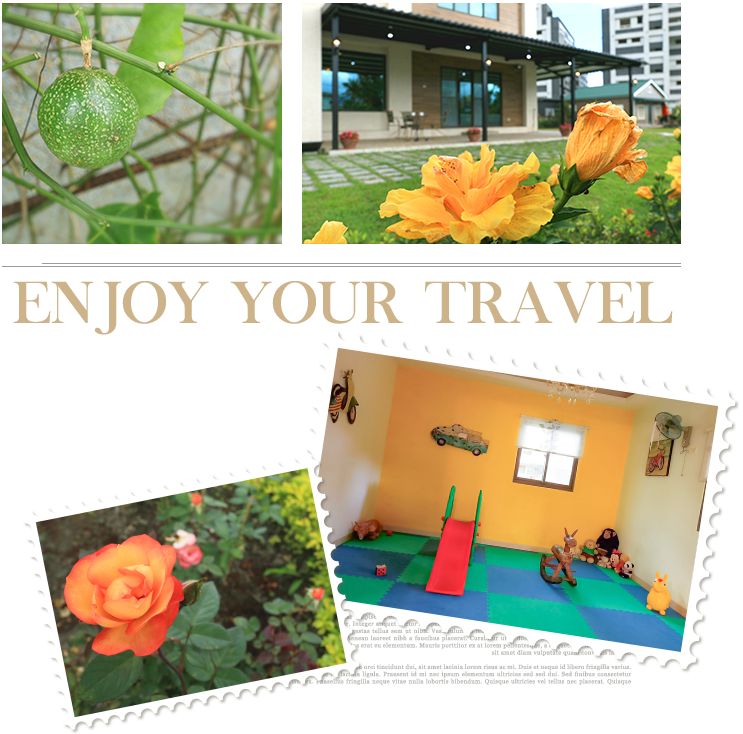 盛開的鮮花,用它豔麗的花瓣鋪就人生的道路;熱情是美妙的樂章,用它跳躍的音符譜寫人生的旋律。 人生如一本書,應該多一些精彩的細節。踩著輕快的腳步,找尋一處通往自由幸福的大門, 問如何找尋,微風的柔情捎來的幸福的花語帶領您前往... 民宿近東大門夜市、吉安慶修院、知卡宣親水公園、海洋公園、花蓮文化創意產業園區、吉安海濱公園、北濱公園等。